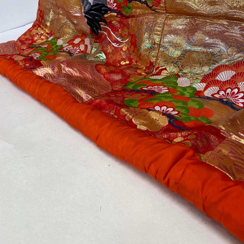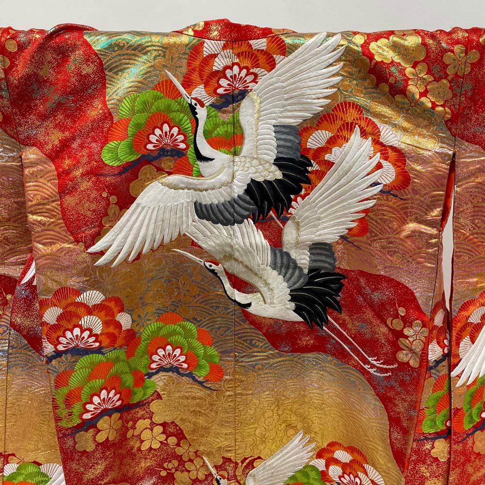 色打掛 正絹 鶴 刺繍 金 赤 打掛 Mサイズ 裄66 花嫁衣裳 婚礼 リサイクル 中古 ブライダル ウエディング 着物 3984