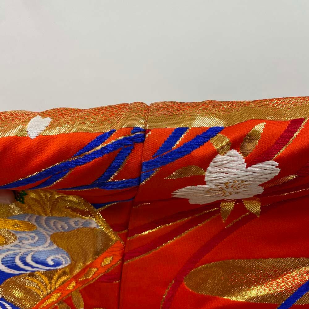 色打掛 正絹 鶴 刺繍 金 赤 打掛 Mサイズ 裄66 花嫁衣裳 婚礼 リサイクル 中古 ブライダル ウエディング 着物 3998