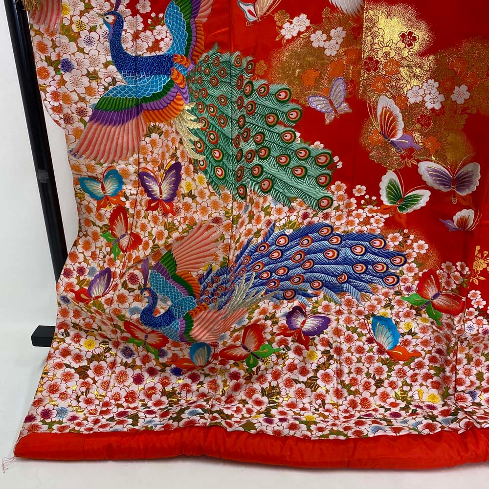 色打掛 正絹 鶴 刺繍 金 赤 打掛 Lサイズ 裄67 花嫁衣裳 婚礼 リサイクル 中古 ブライダル ウエディング 着物 3999
