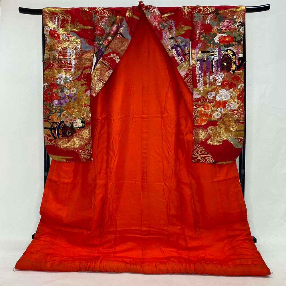 色打掛 正絹 鶴 刺繍 金 紺 打掛 Mサイズ 裄66.5 花嫁衣裳 婚礼 リサイクル 中古 ブライダル ウエディング 着物 4002