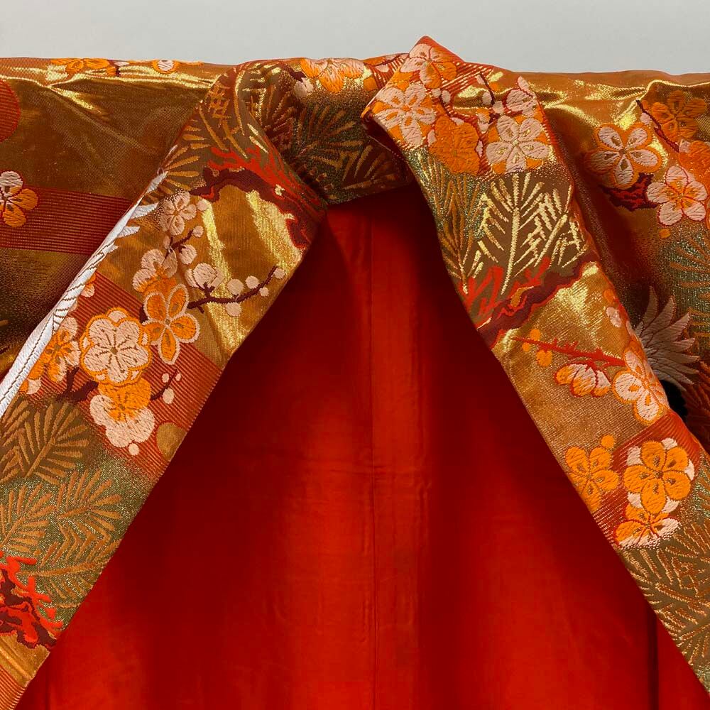 色打掛 正絹 鶴 刺繍 金 打掛 Lサイズ 裄67 花嫁衣裳 婚礼 リサイクル 中古 ブライダル ウエディング 着物 4022
