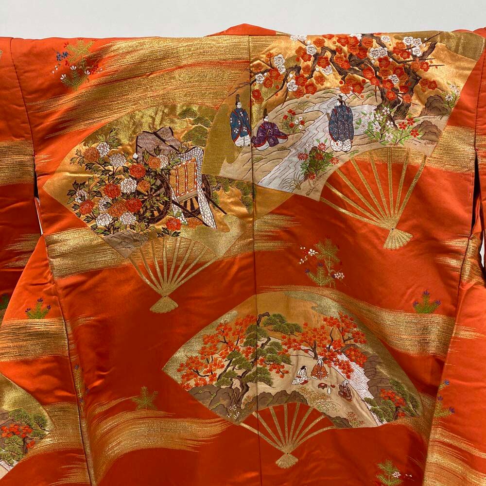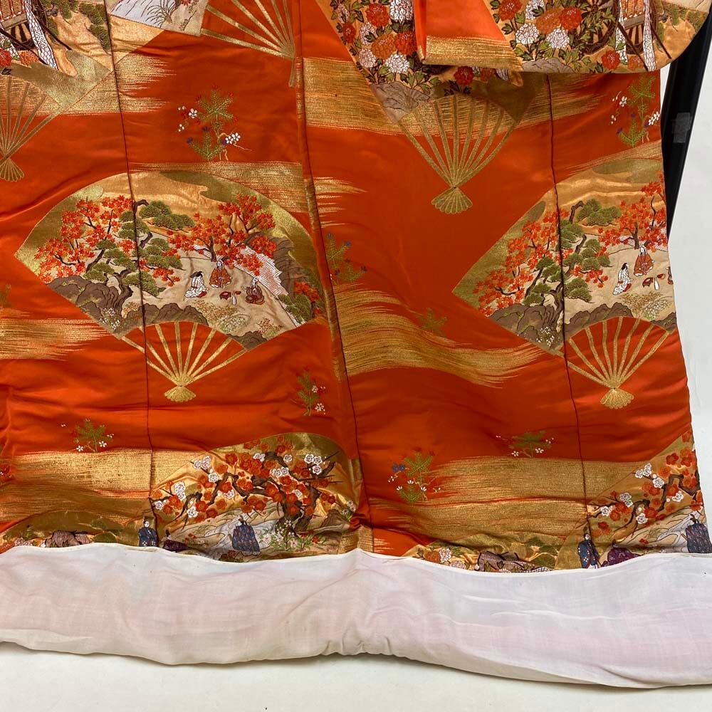 色打掛 正絹 鶴 刺繍 金 オレンジ 打掛 Mサイズ 裄66 花嫁衣裳 婚礼 リサイクル 中古 ブライダル ウエディング 着物 4028