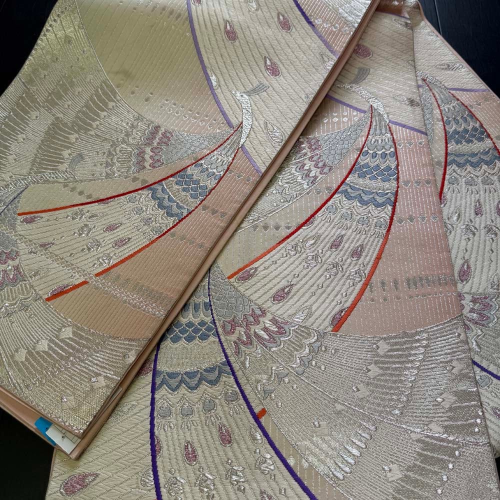 【袋帯】刺繍 金 六通柄袋帯 色無地 訪問着 付け下げ 中古 礼装 正絹 仕立て上がり リメイク リサイクル 4247