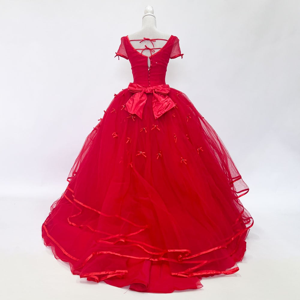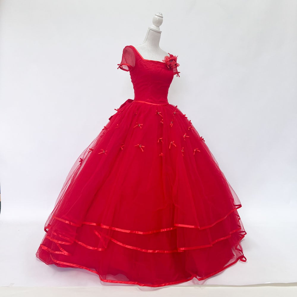 中古 カラードレス 赤 半袖 Lovely Wedding 9号程度 撮影衣装 結婚式 二次会 ステージドレスなどに C-262
