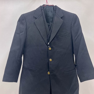 キッズタキシード ブラック 黒 ストライプ柄 130サイズ 3点セット 中古 結婚式 発表会 撮影衣装 KDTX-15