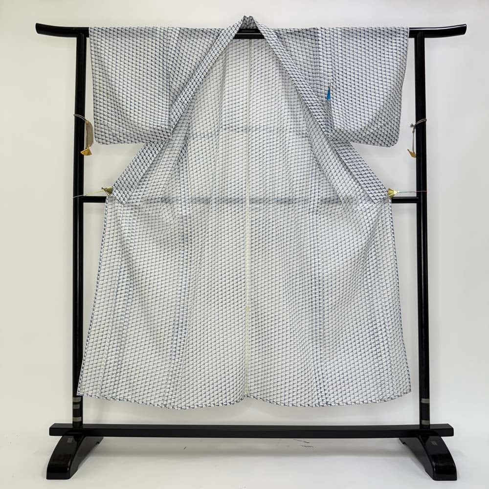 小紋 夏 絽 夏用 洗える着物 裄60.8cm 身丈149.5cm 花柄 お洒落着 普段着 ポリエステル 白 美品 S サイズ 4319