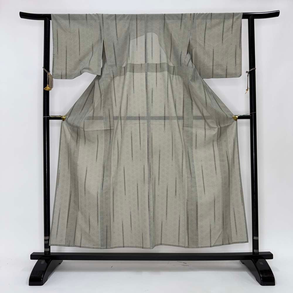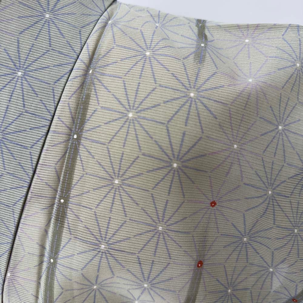 小紋 夏 絽 夏用 洗える着物 裄61.5cm 身丈154cm 花柄 お洒落着 普段着 ポリエステル 抹茶 美品 S サイズ 4321
