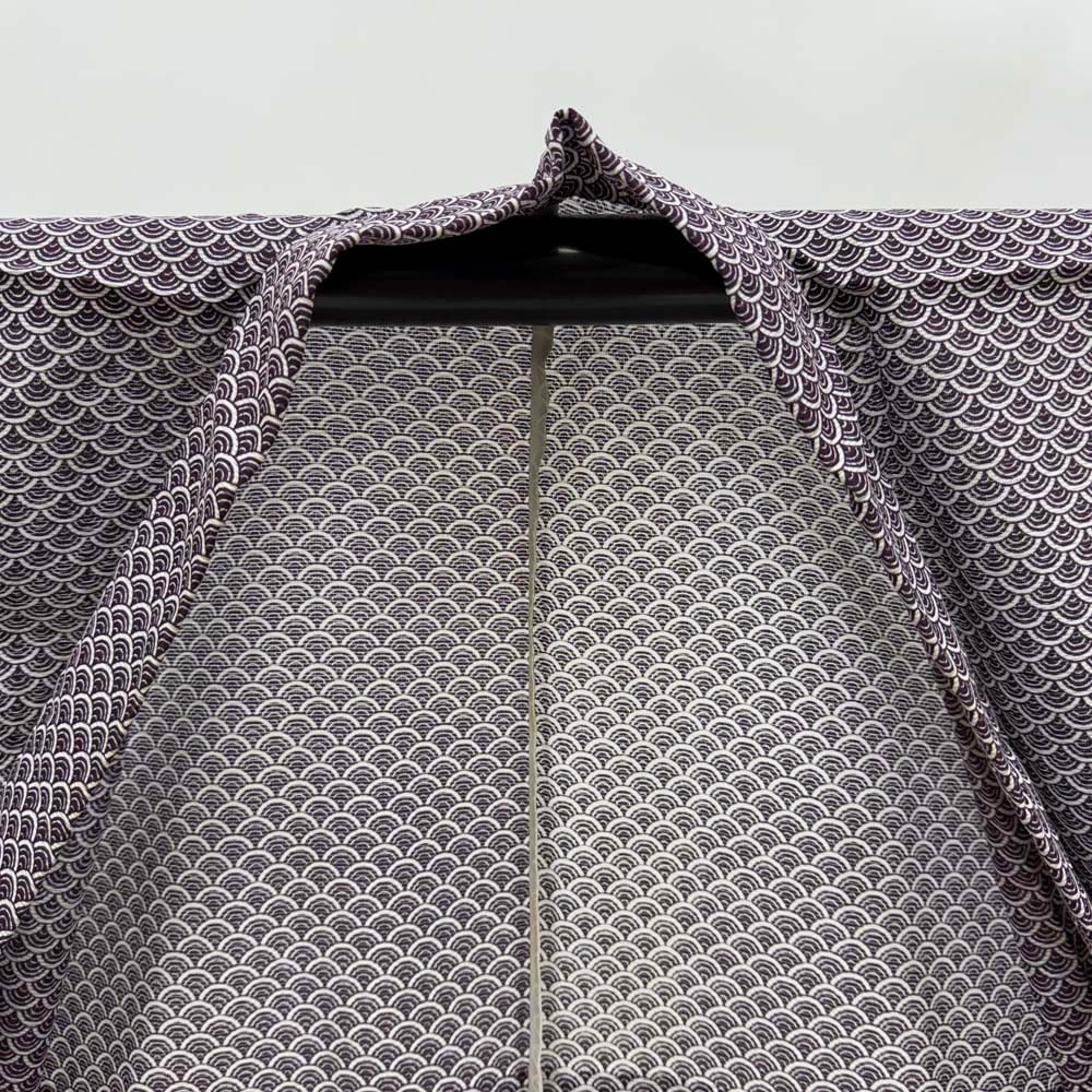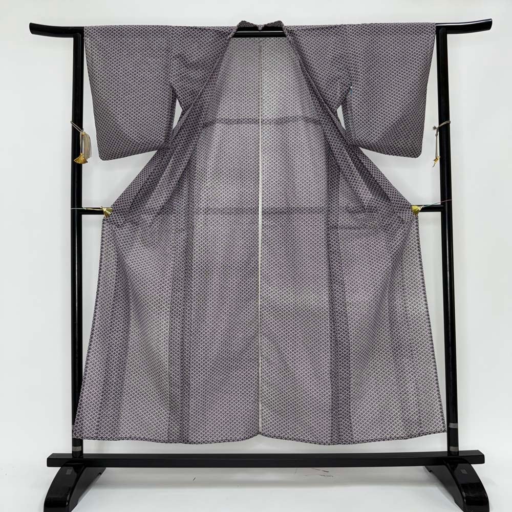 小紋 夏 絽 夏用 洗える着物 裄62cm 身丈153cm 花柄 お洒落着 普段着 ポリエステル 紫 美品 S サイズ 4324