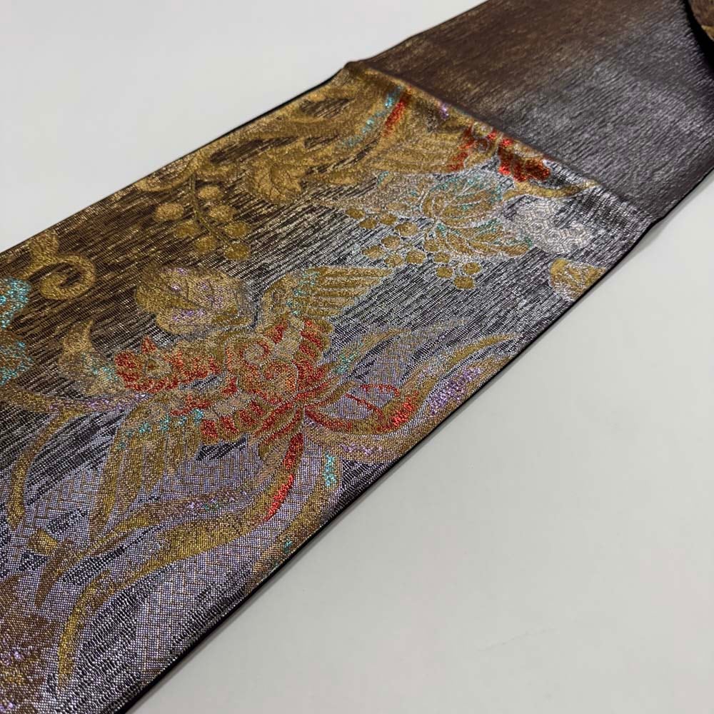 振袖用袋帯 訳あり 成人式 帯 袋帯 中古 リサイクル 礼装 振袖 正絹 結婚式 仕立て上がり 銀 金 448cm 4402
