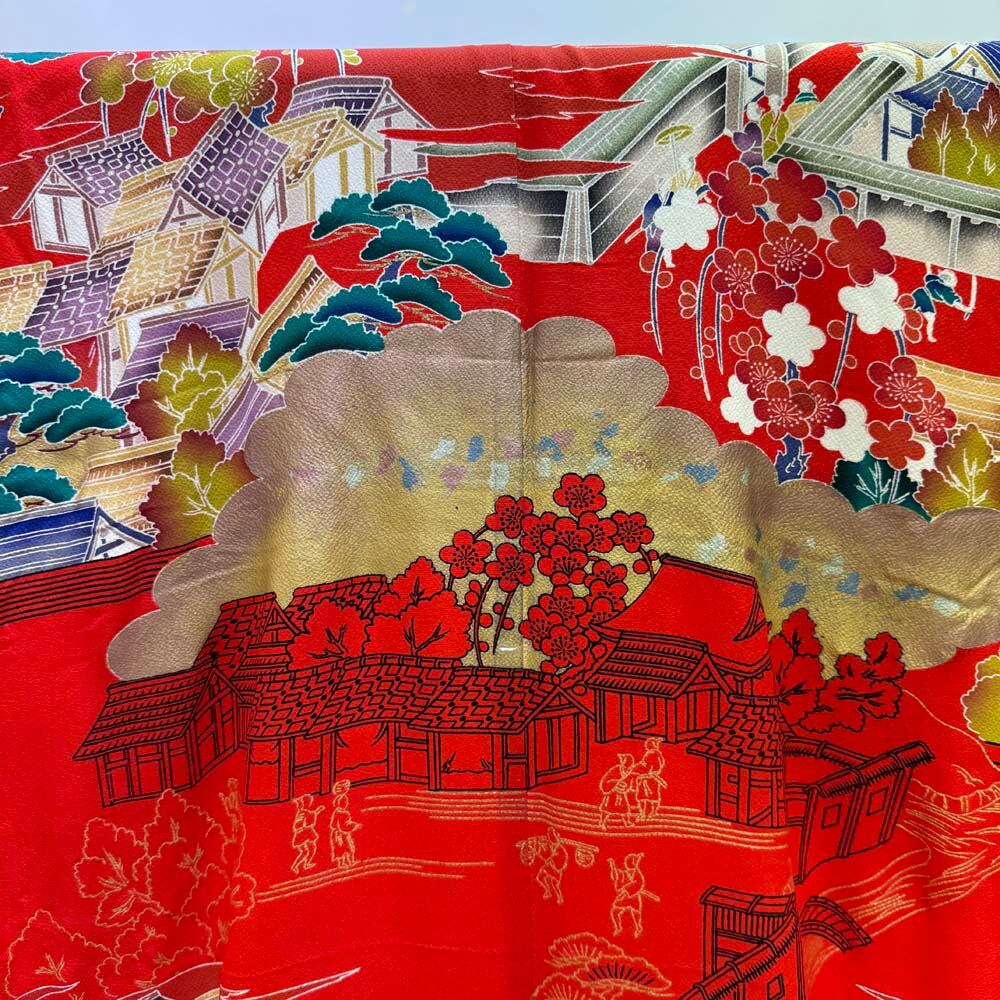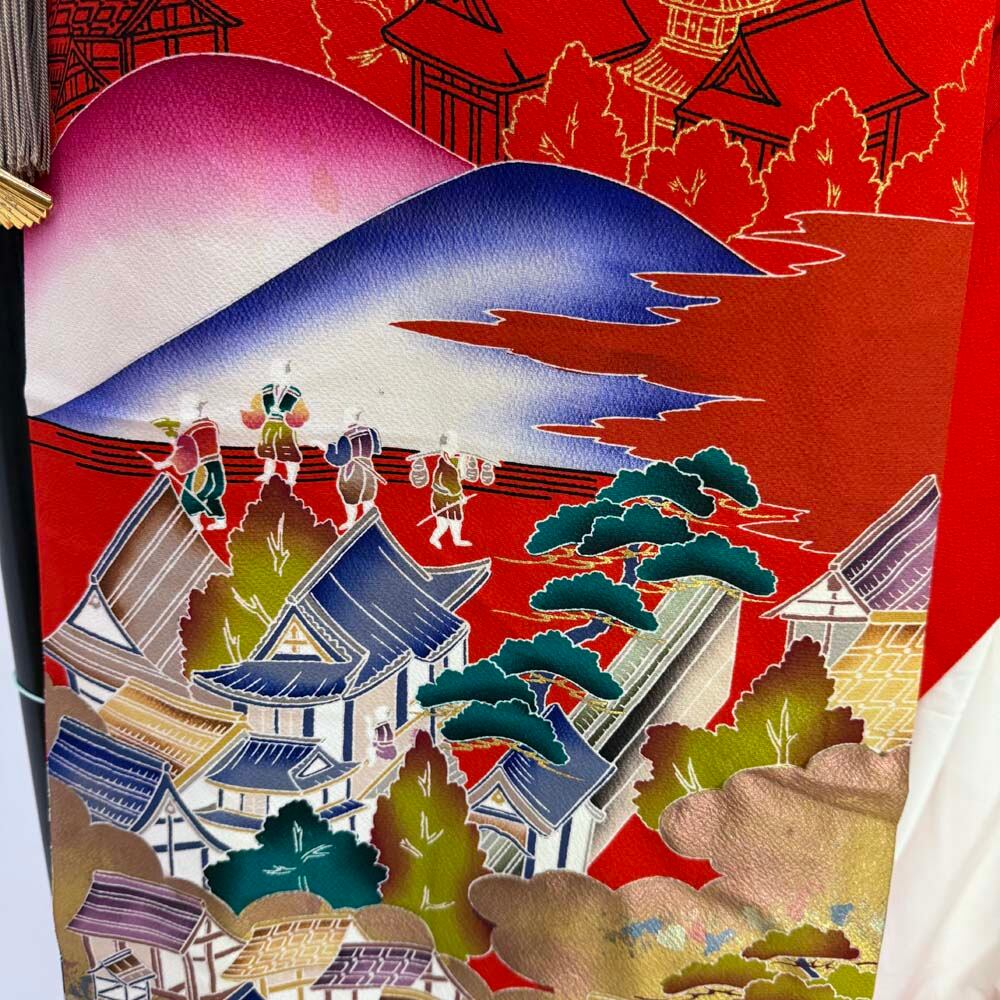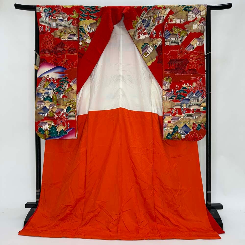 本振袖 引き振袖 正絹 赤 花柄 古典 刺繍 結婚式 裄64.2cm Bランク 花嫁衣装 Mサイズ 4437