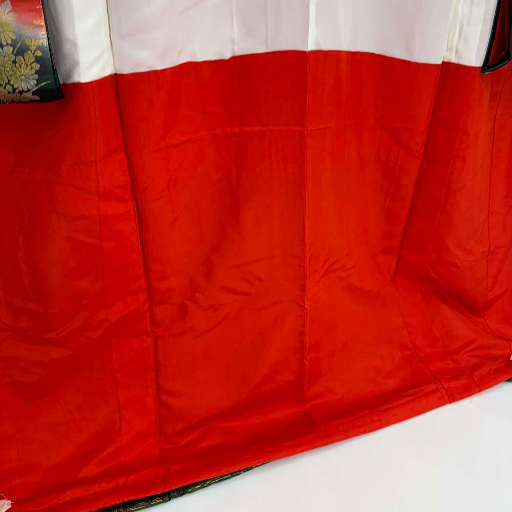 本振袖 引き振袖 ポリエステル 黒 花柄 古典 刺繍 結婚式 裄66cm Bランク 花嫁衣装 Mサイズ 4443