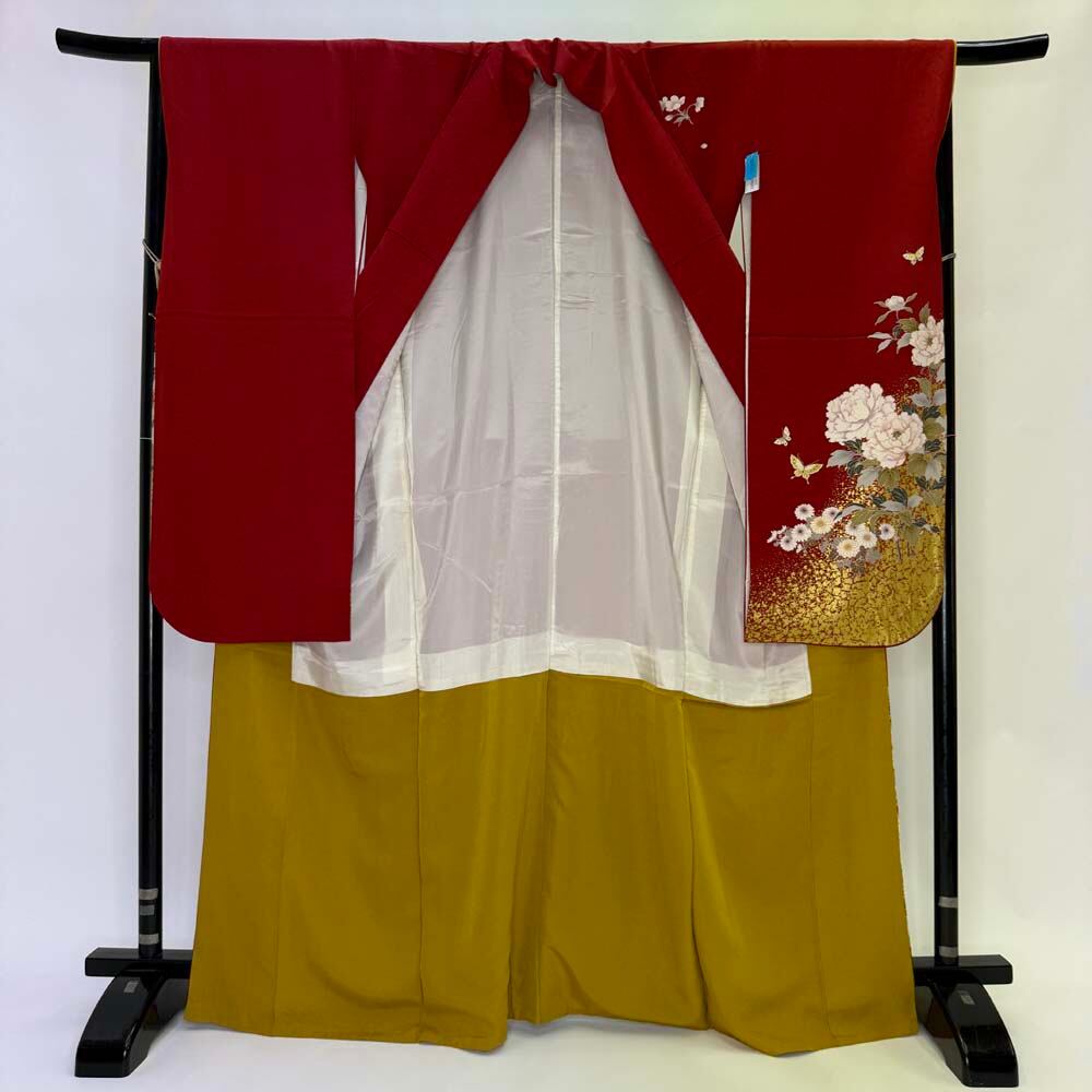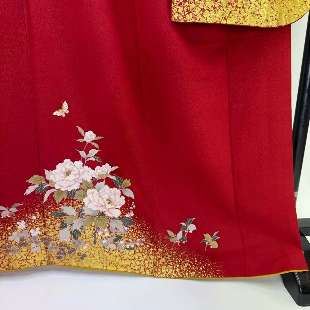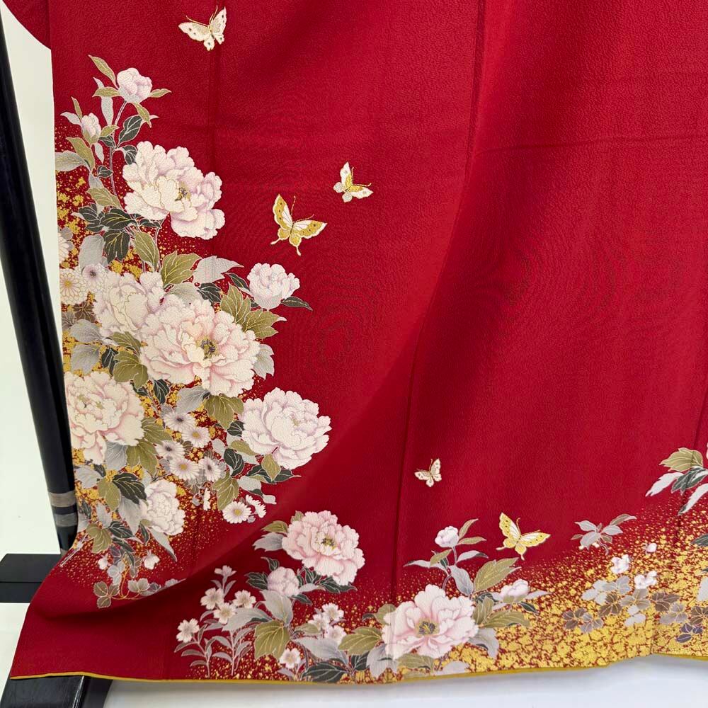 振袖 中古 赤 正絹 古典 裄66.2cm 身丈168.3cm 美品 M サイズ 成人式 4455