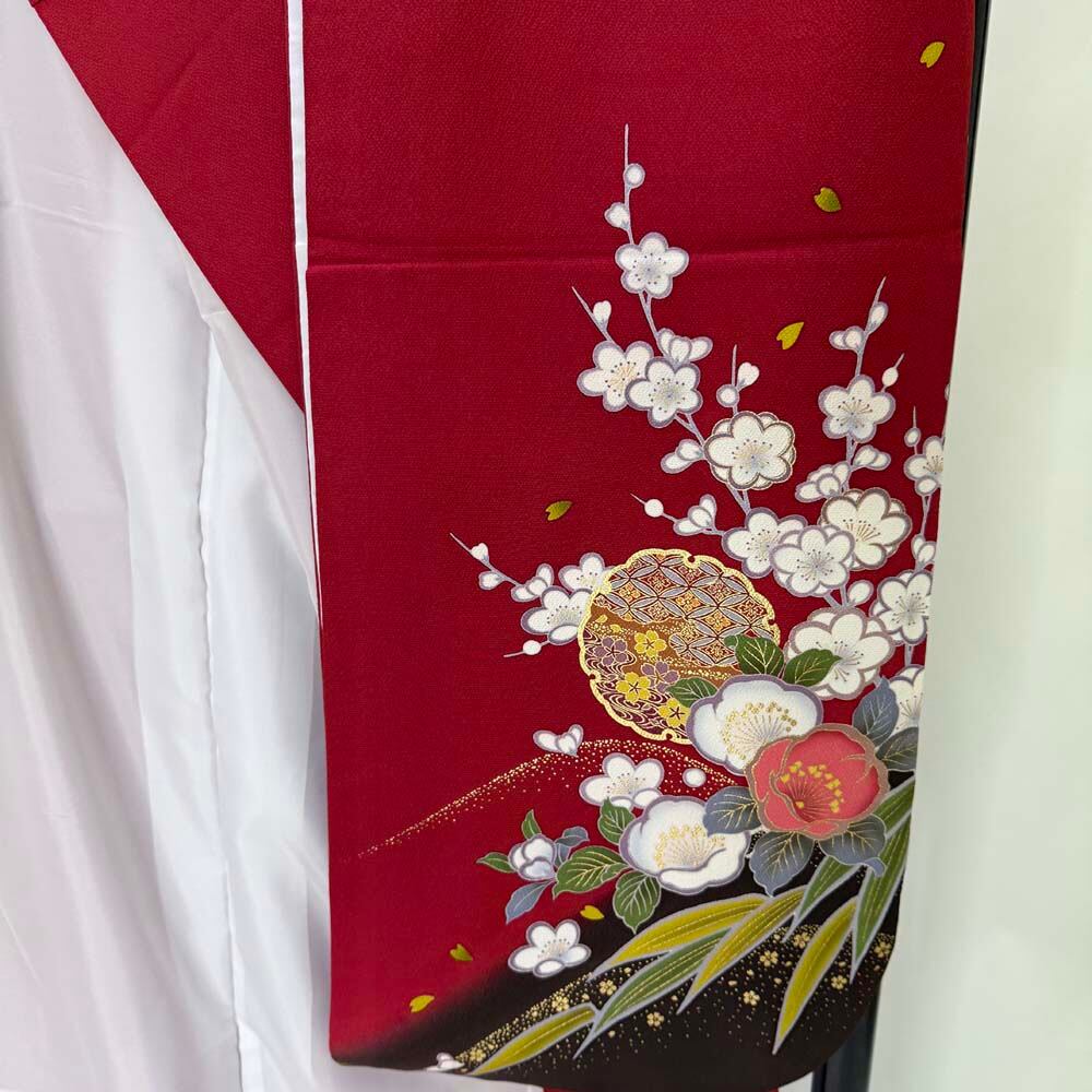 振袖 中古 赤 正絹 古典 裄68cm 身丈170cm 美品 L サイズ 成人式 4457