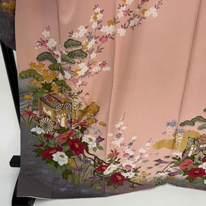 振袖 中古 ピンク 正絹 古典 裄68cm 身丈171cm 美品 L サイズ 成人式 4459