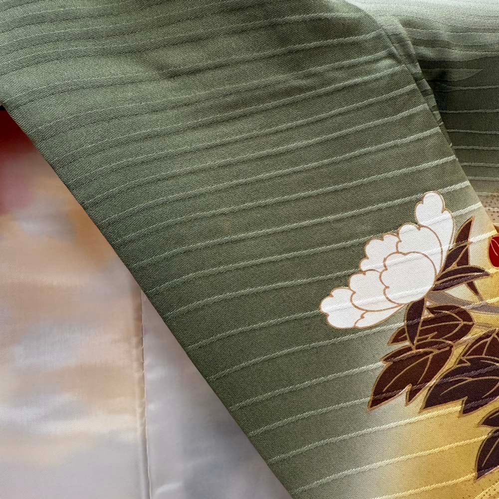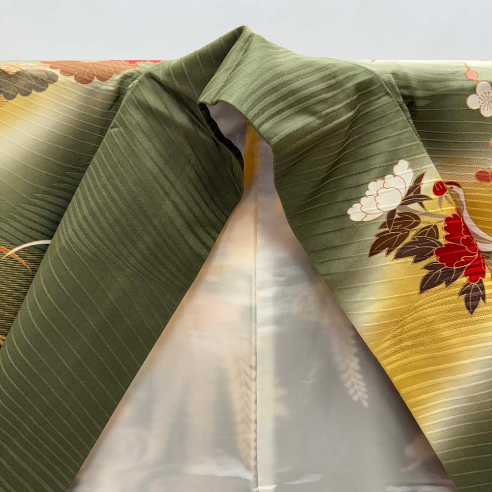 振袖 中古 緑 大正ロマン 風 正絹 古典 裄67cm 身丈168.5cm 美品 L サイズ 成人式 4480
