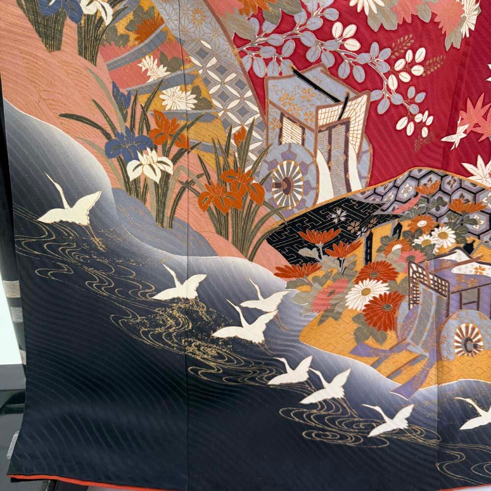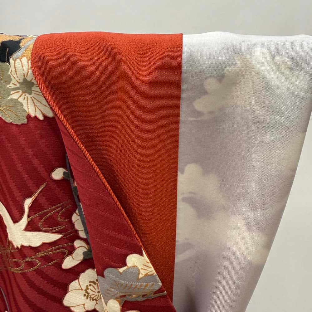 振袖 中古 赤色 正絹 古典 裄68cm 身丈168.5cm 美品 L サイズ 成人式 4482