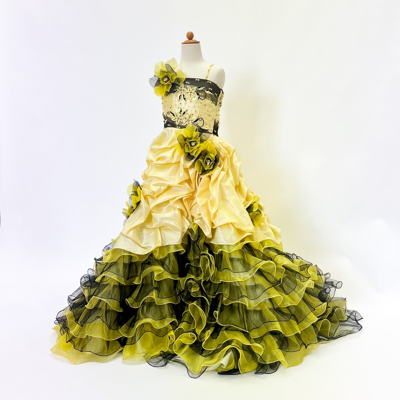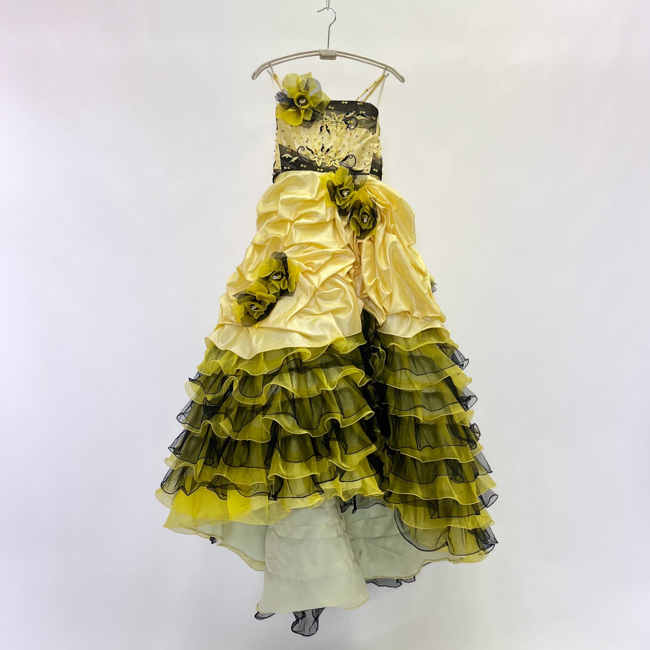 中古 キッズドレス 子供ドレス 黄色 7才サイズ 撮影衣装 結婚式 ステージドレスなどに KD-44