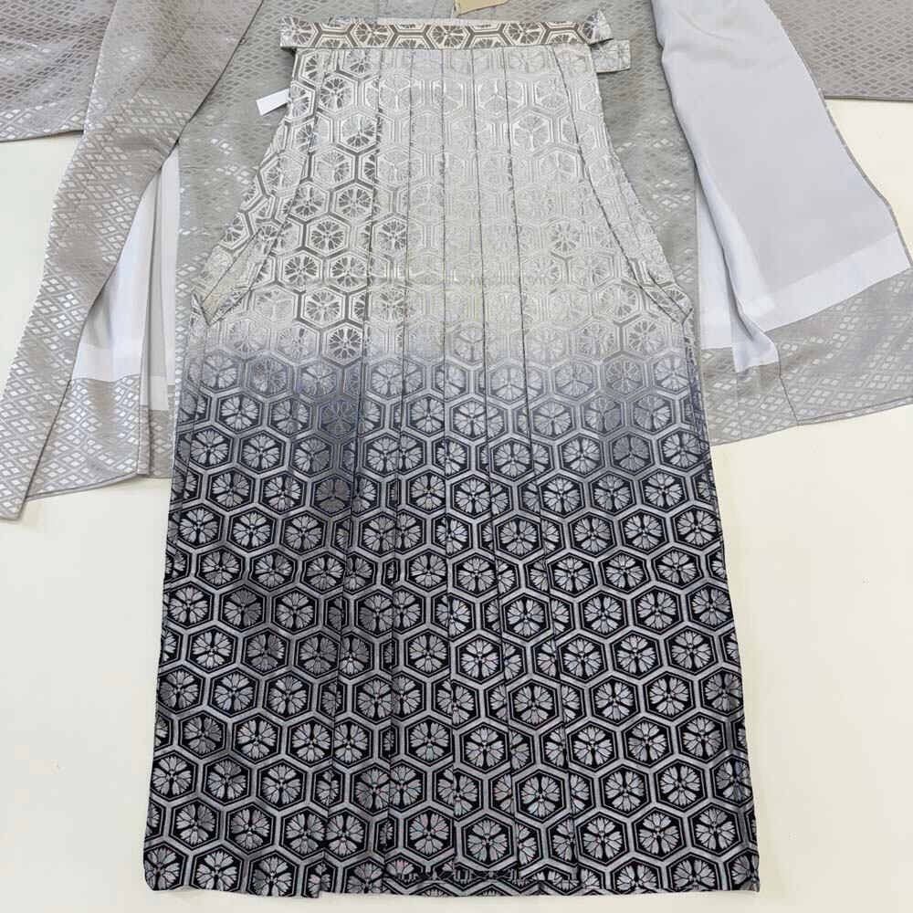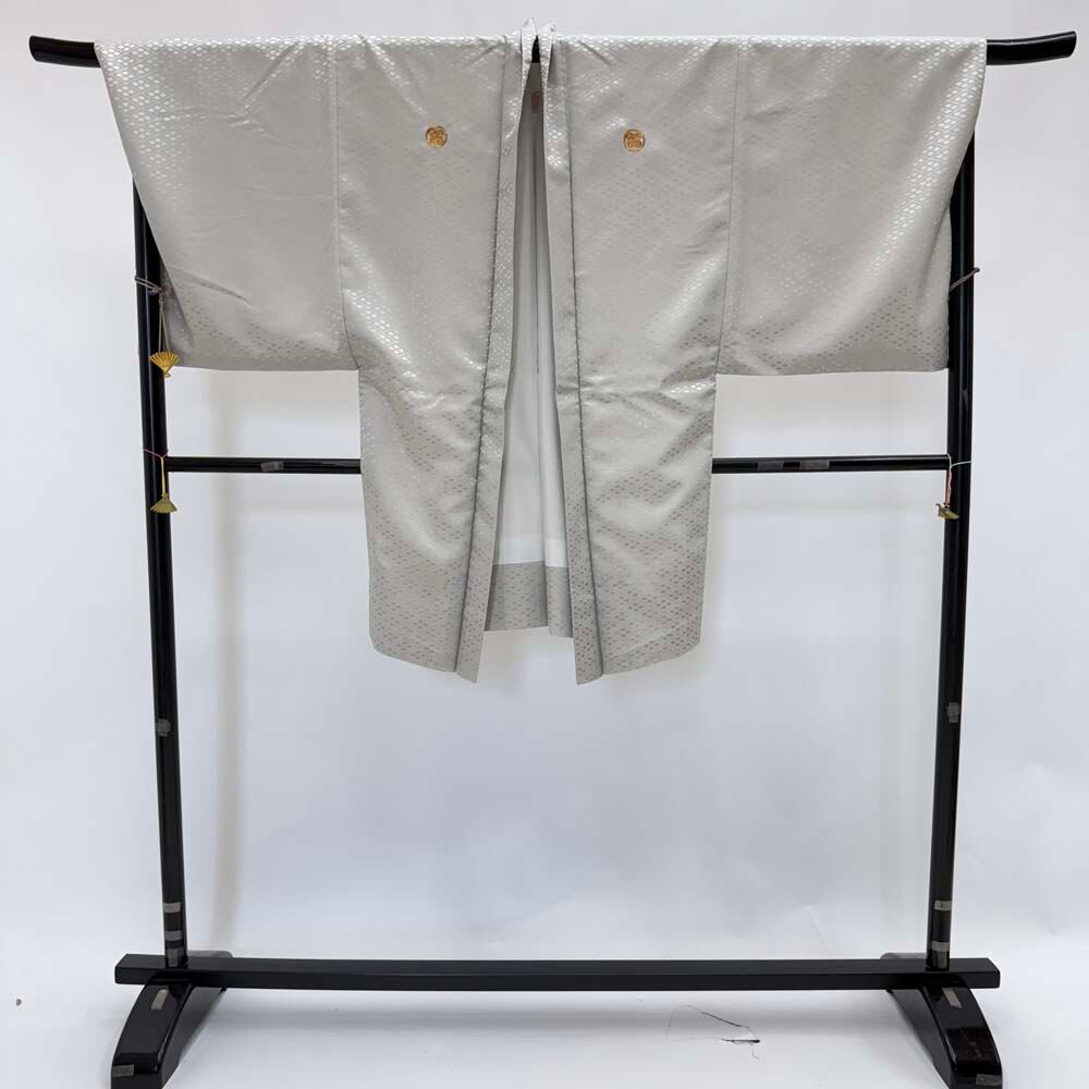 紋付袴 6点セット 着物 羽織 袴 長襦袢 羽織紐 角帯 裄72cm 袴丈91cm 2L グレー 五つ紋 中古 4496