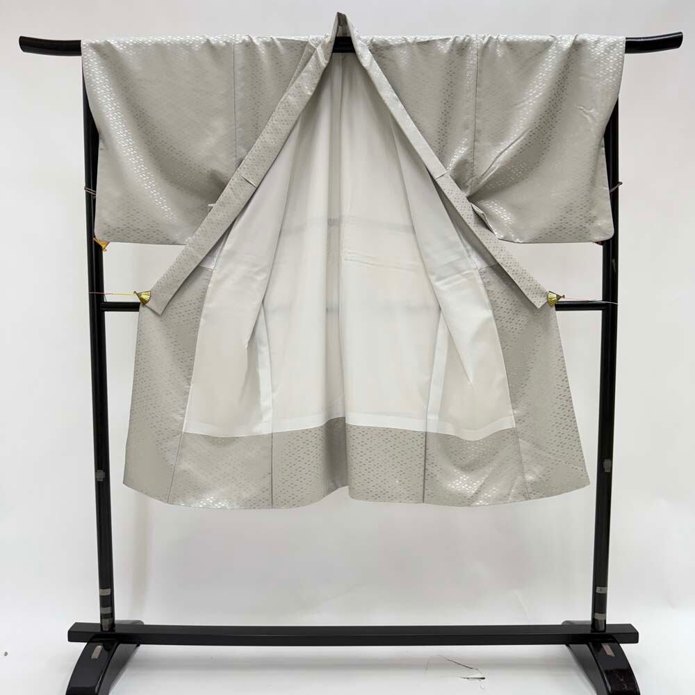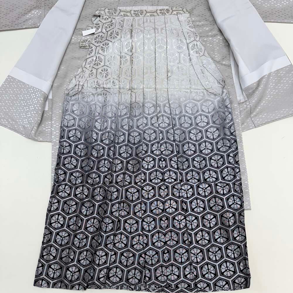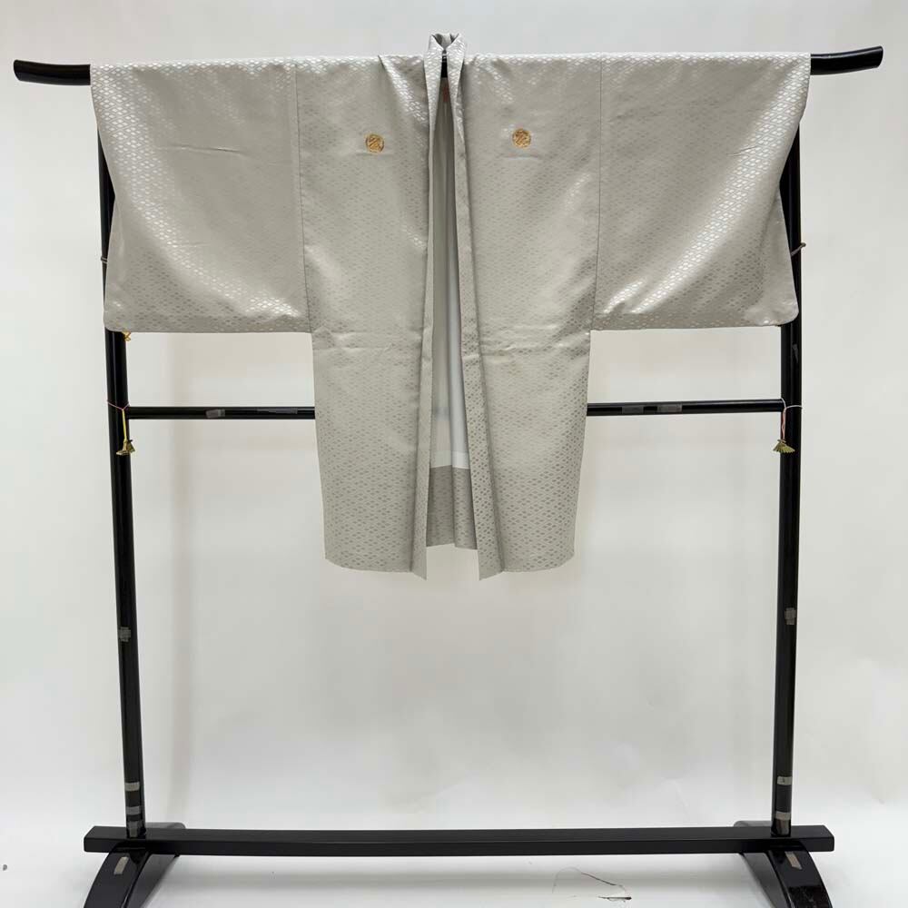 紋付袴 6点セット 着物 羽織 袴 長襦袢 羽織紐 角帯 裄75.5cm 袴丈89cm L グレー 五つ紋 中古 4497