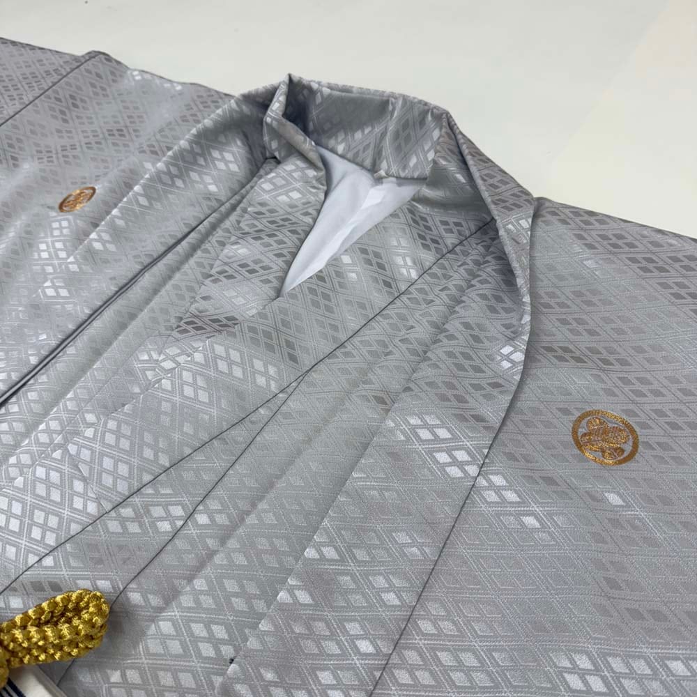 羽織には貼紋の丸に違い鷹の羽の五つ紋が付いています。