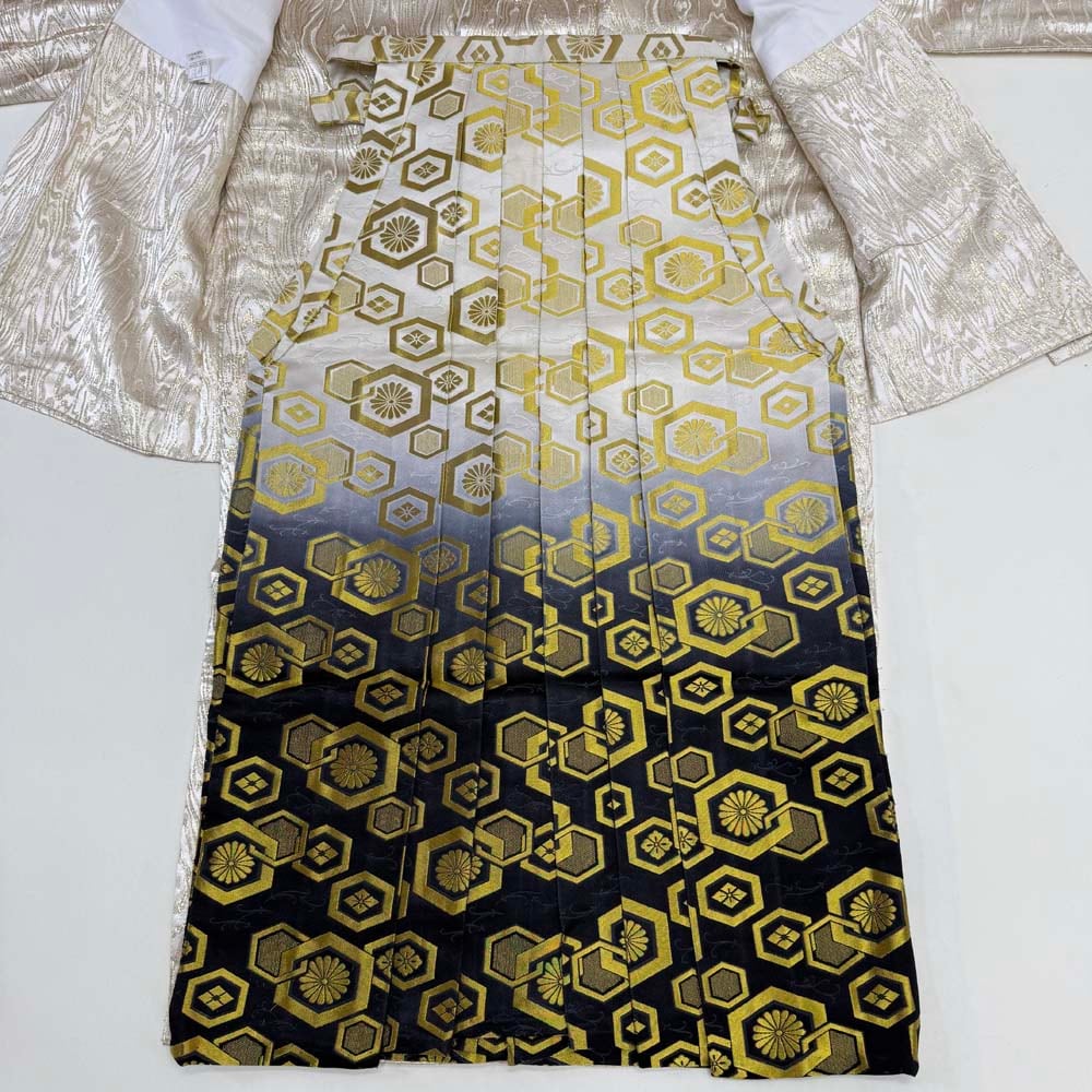 紋付袴 6点セット 着物 羽織 袴 長襦袢 羽織紐 角帯 裄71cm 袴丈89cm L シルバー 五つ紋 中古 4499