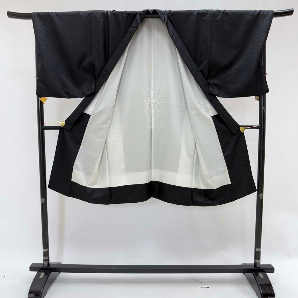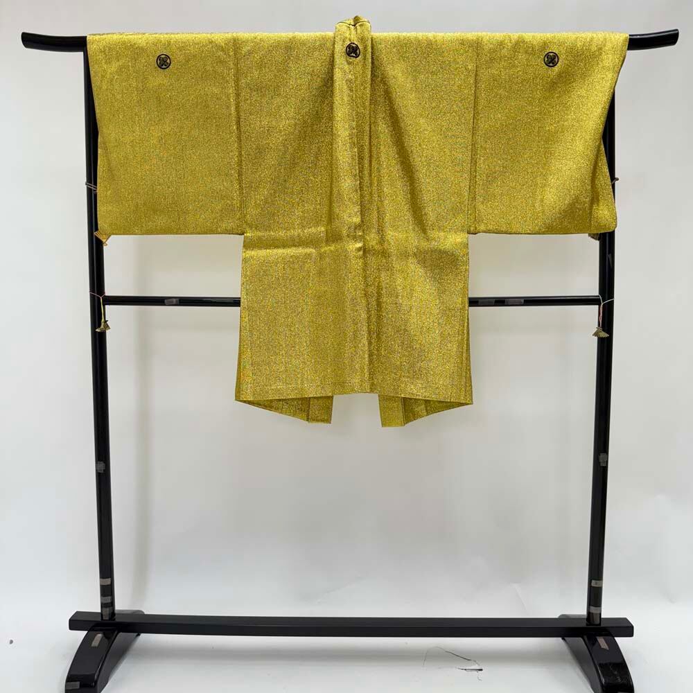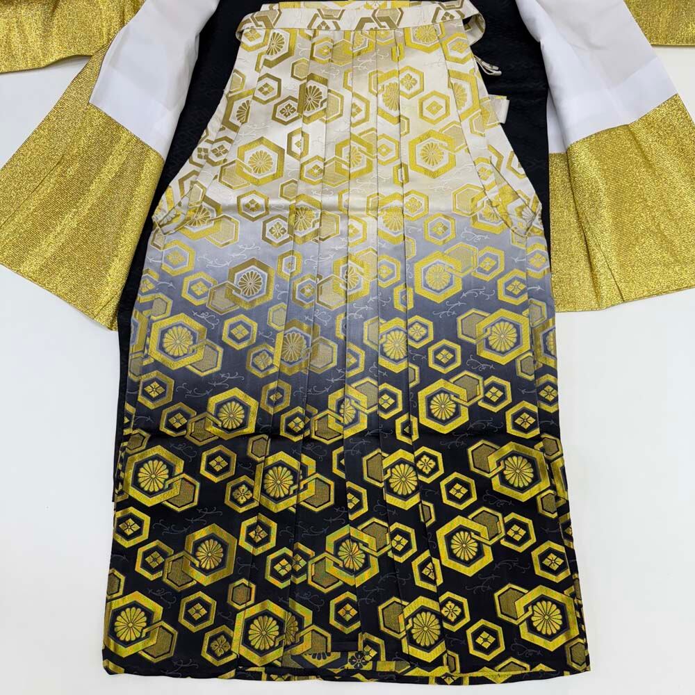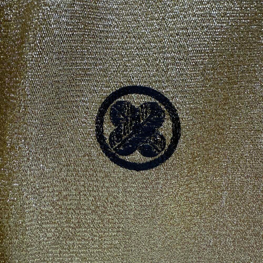 紋付袴 6点セット 着物 羽織 袴 長襦袢 羽織紐 角帯 裄71.8cm 袴丈88cm L 金 黒 五つ紋 中古 4513
