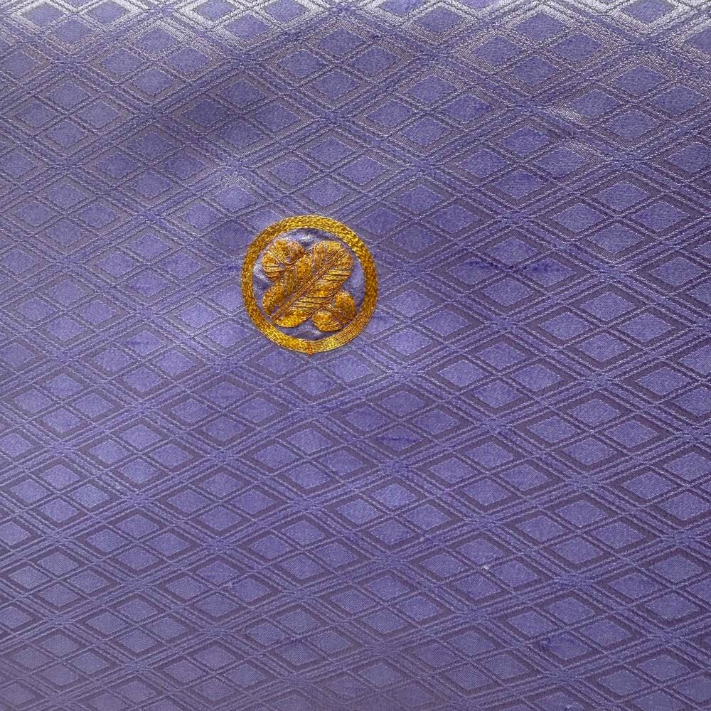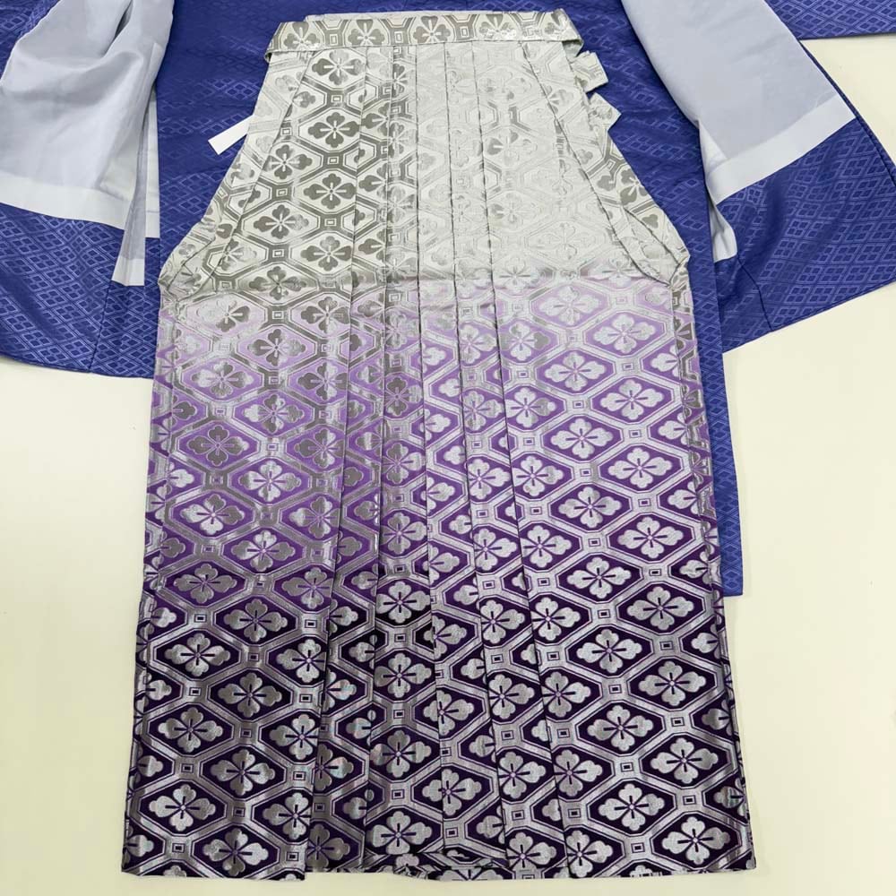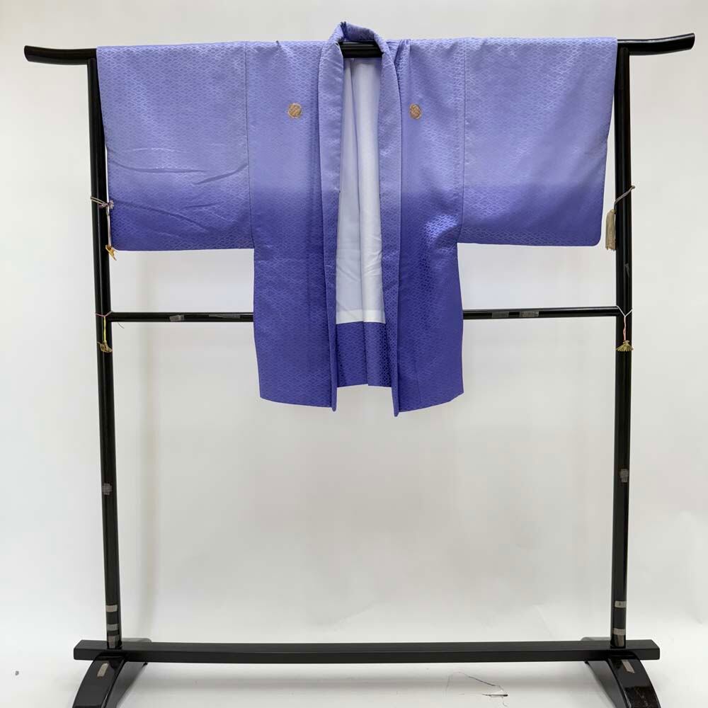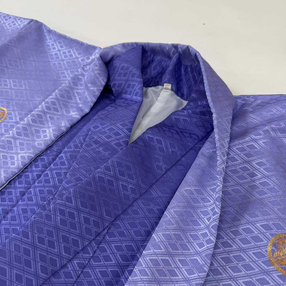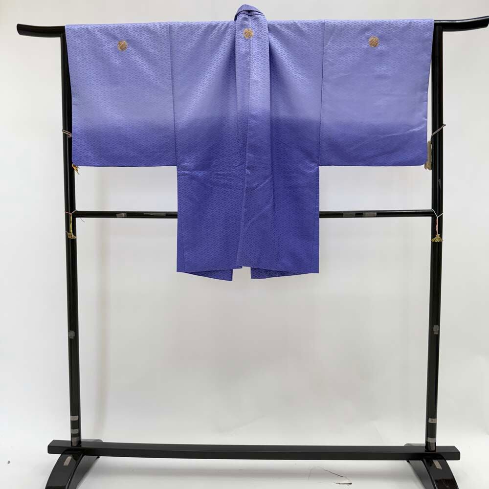 紋付袴 5点セット 着物 羽織 袴 長襦袢 角帯 裄70.6cm 袴丈86cm M~L 紫 グレー 五つ紋 中古 4518