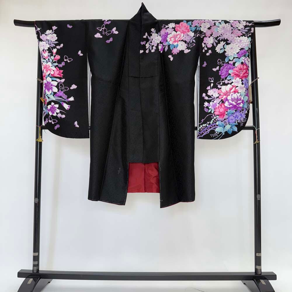 二尺袖 単品 卒業式着物 黒 森英恵 裄68cm Lサイズ 袴用着物 化繊 中古 4526