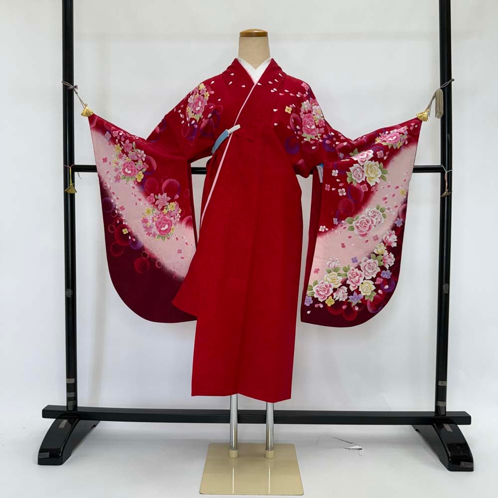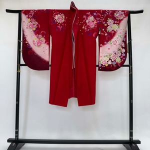 二尺袖 単品 卒業式着物 赤 裄68.5cm Lサイズ 袴用着物 化繊 中古 4527