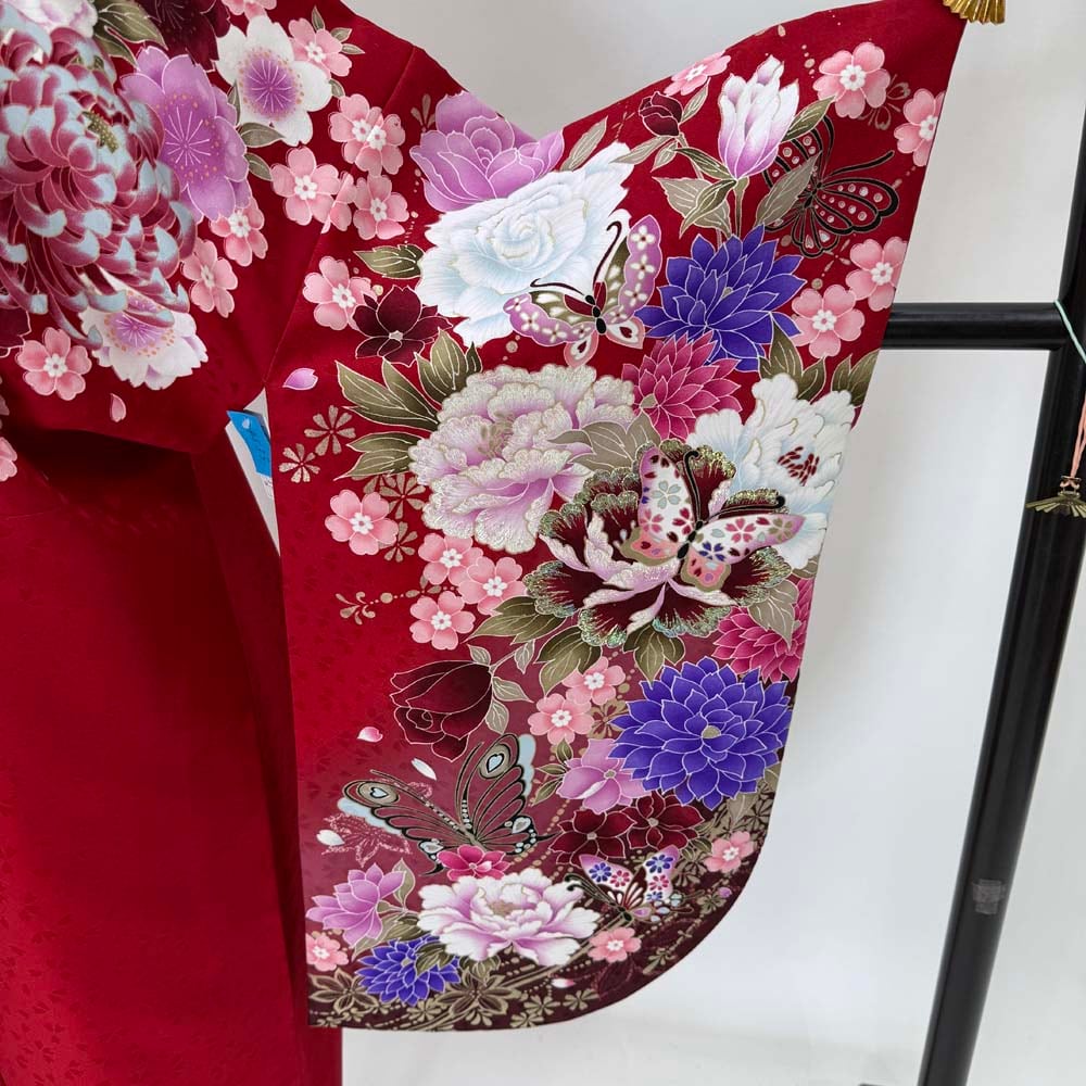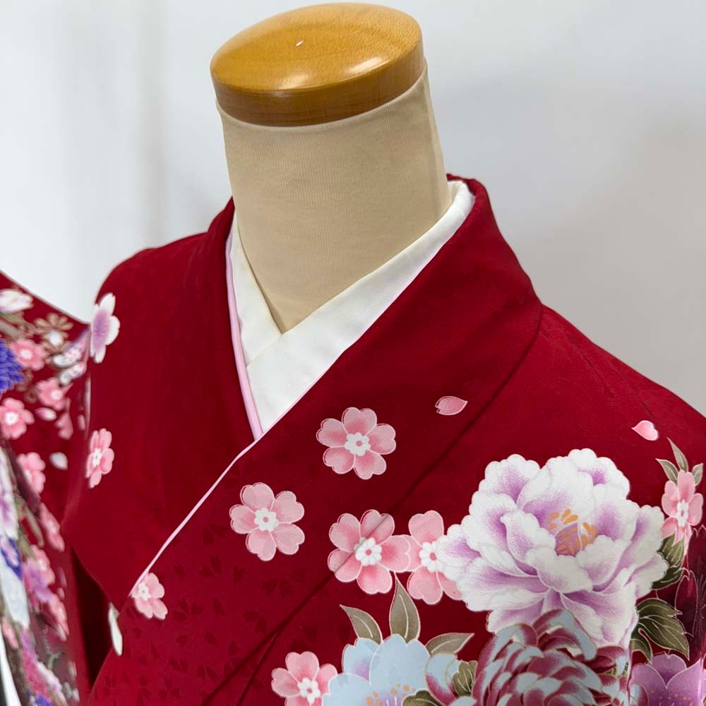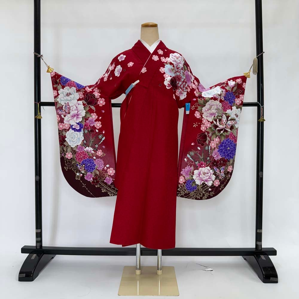 二尺袖 単品 卒業式着物 赤 裄68.5cm Lサイズ 袴用着物 化繊 中古 4533