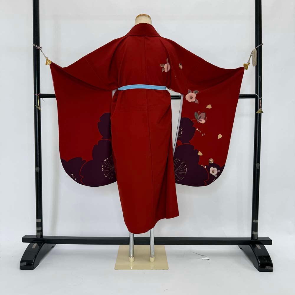 二尺袖 単品 卒業式着物 赤 裄68.5cm Lサイズ 袴用着物 化繊 中古 4534