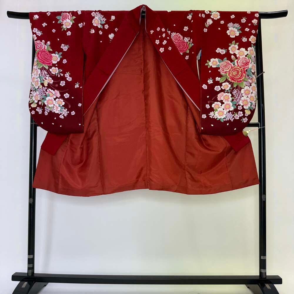二尺袖 単品 卒業式着物 赤 裄68.5cm Lサイズ 袴用着物 化繊 中古 4535