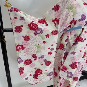 二尺袖 単品 卒業式着物 白 裄69.5cm LLサイズ 袴用着物 化繊 中古 4551