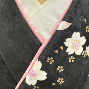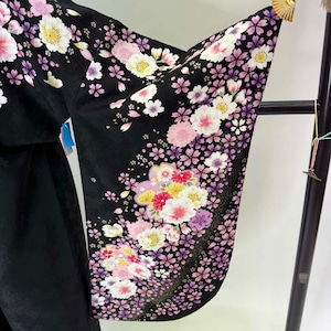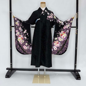 二尺袖 単品 卒業式着物 黒 裄68cm Lサイズ 袴用着物 化繊 中古 4559