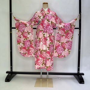 二尺袖 単品 卒業式着物 ピンク 裄68cm Lサイズ 袴用着物 化繊 中古 4567