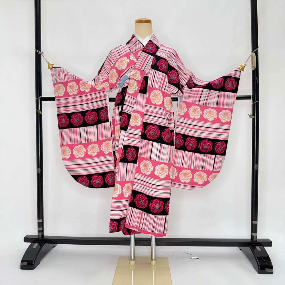 二尺袖 単品 卒業式着物 ピンク 裄69cm LLサイズ 袴用着物 化繊 中古 4568