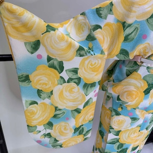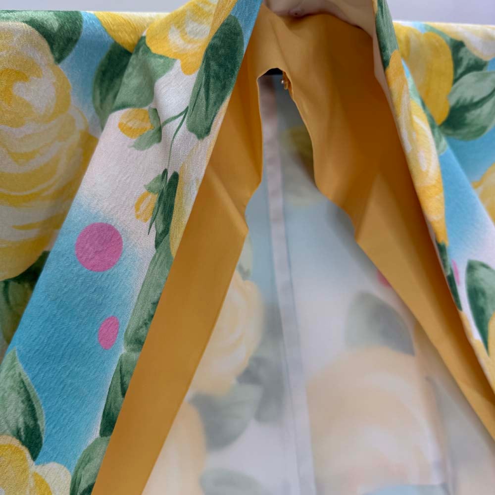 二尺袖 単品 卒業式着物 水色 黄色 裄68cm Lサイズ 袴用着物 化繊 中古 4580