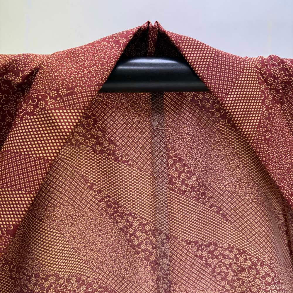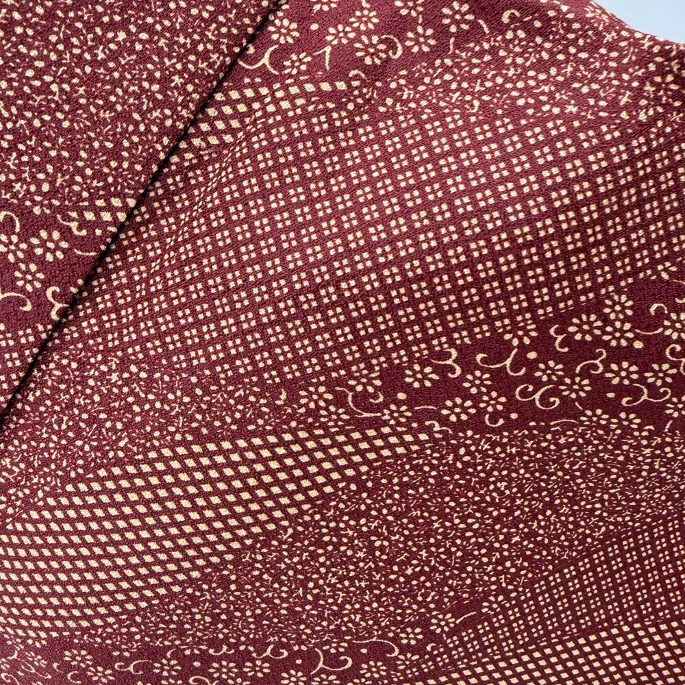 小紋 単衣 洗える着物 裄66cm 身丈154.5cm 花柄 お洒落着 普段着 ポリエステル エンジ 美品 M サイズ 4595
