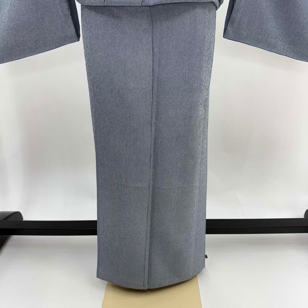 小紋 単衣 洗える着物 裄65.4cm 身丈160.7cm 花柄 お洒落着 普段着 ポリエステル 白 黒 美品 M サイズ 4600