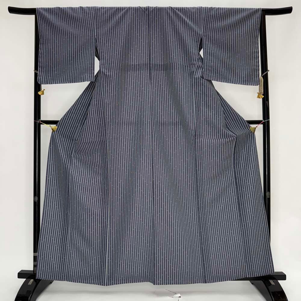 小紋 単衣 洗える着物 裄65.4cm 身丈161.5cm 花柄 お洒落着 普段着 ポリエステル 白 黒 美品 M サイズ 4601