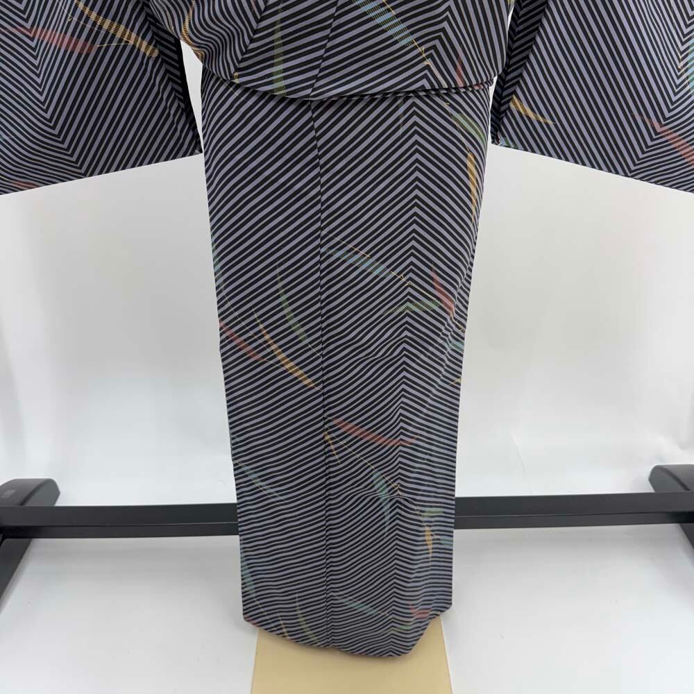 小紋 単衣 洗える着物 裄65.4cm 身丈160cm 花柄 お洒落着 普段着 ポリエステル 白 グレー 美品 M サイズ 4602