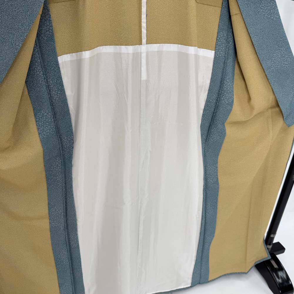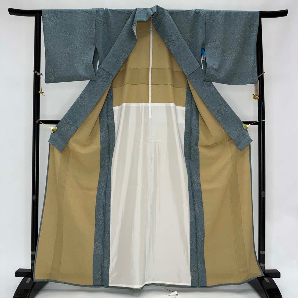 小紋 単衣 洗える着物 裄64.4cm 身丈162.5cm 花柄 お洒落着 普段着 ポリエステル 緑 美品 M サイズ 4606