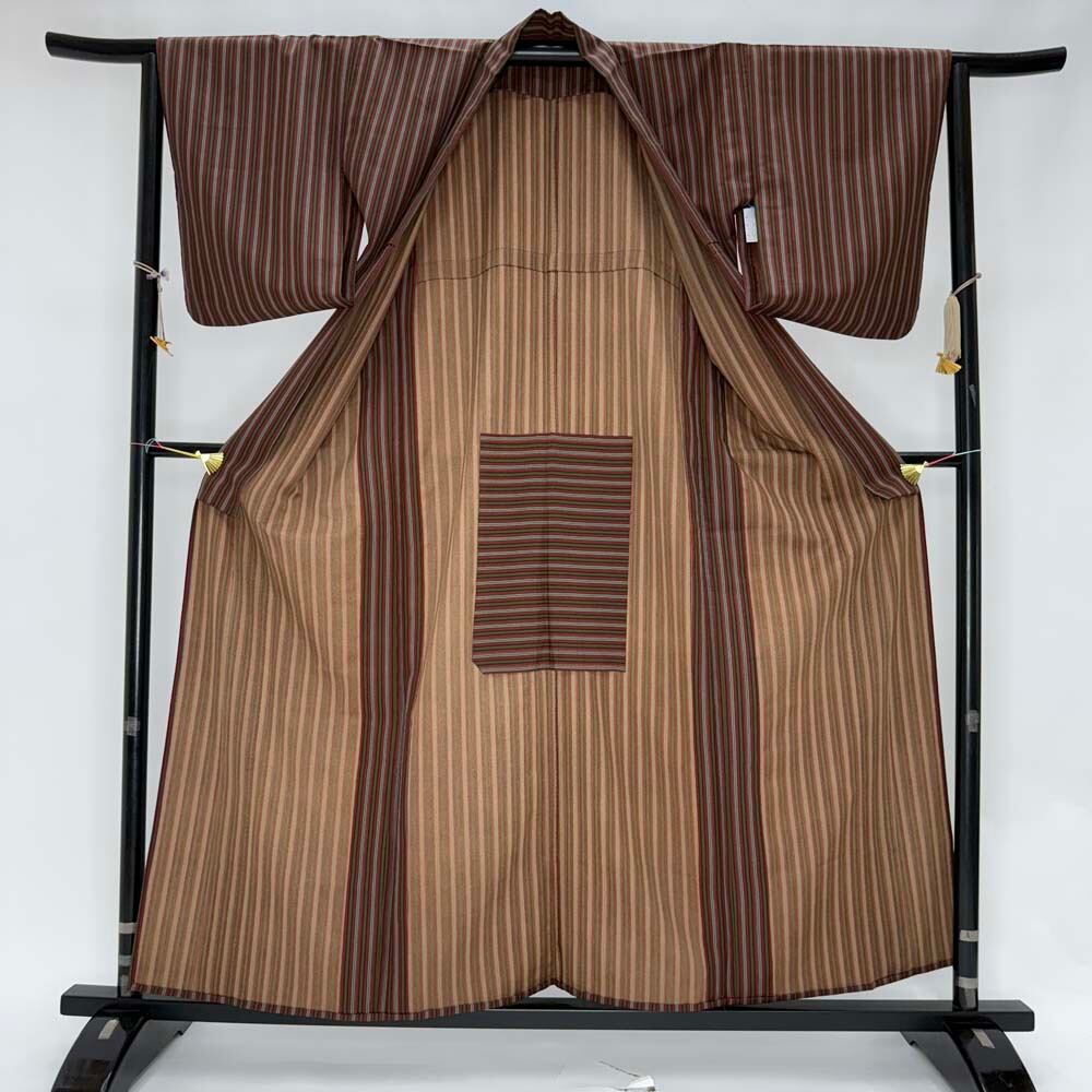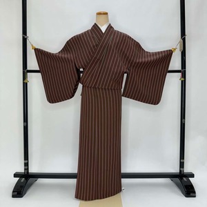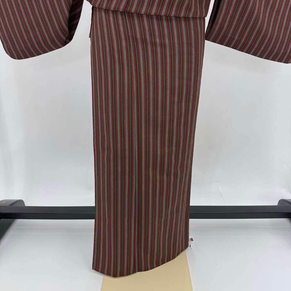 小紋 単衣 洗える着物 裄64.2cm 身丈156.5cm 花柄 お洒落着 普段着 ポリエステル 茶 エンジ 美品 M サイズ 4608