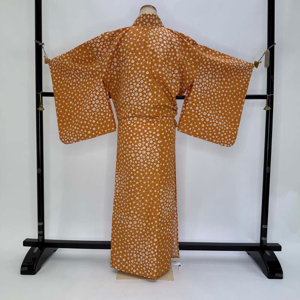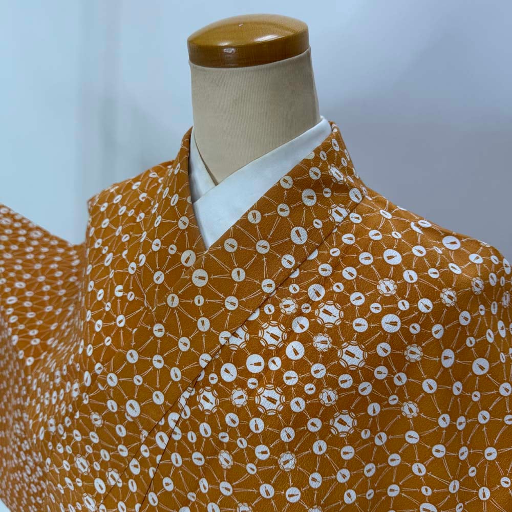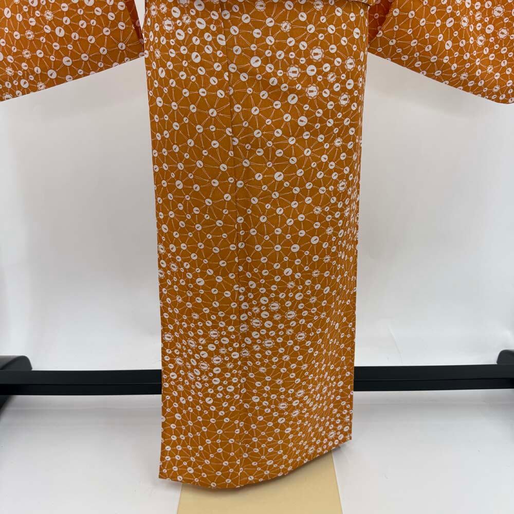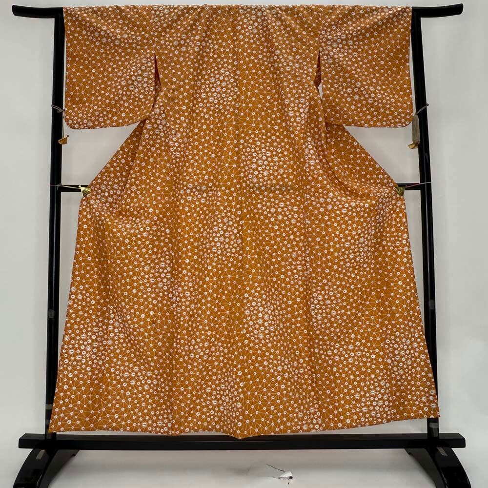 小紋 単衣 洗える着物 裄63.8cm 身丈154cm 花柄 お洒落着 普段着 ポリエステル オレンジ 美品 S サイズ 4611