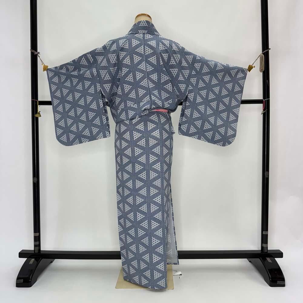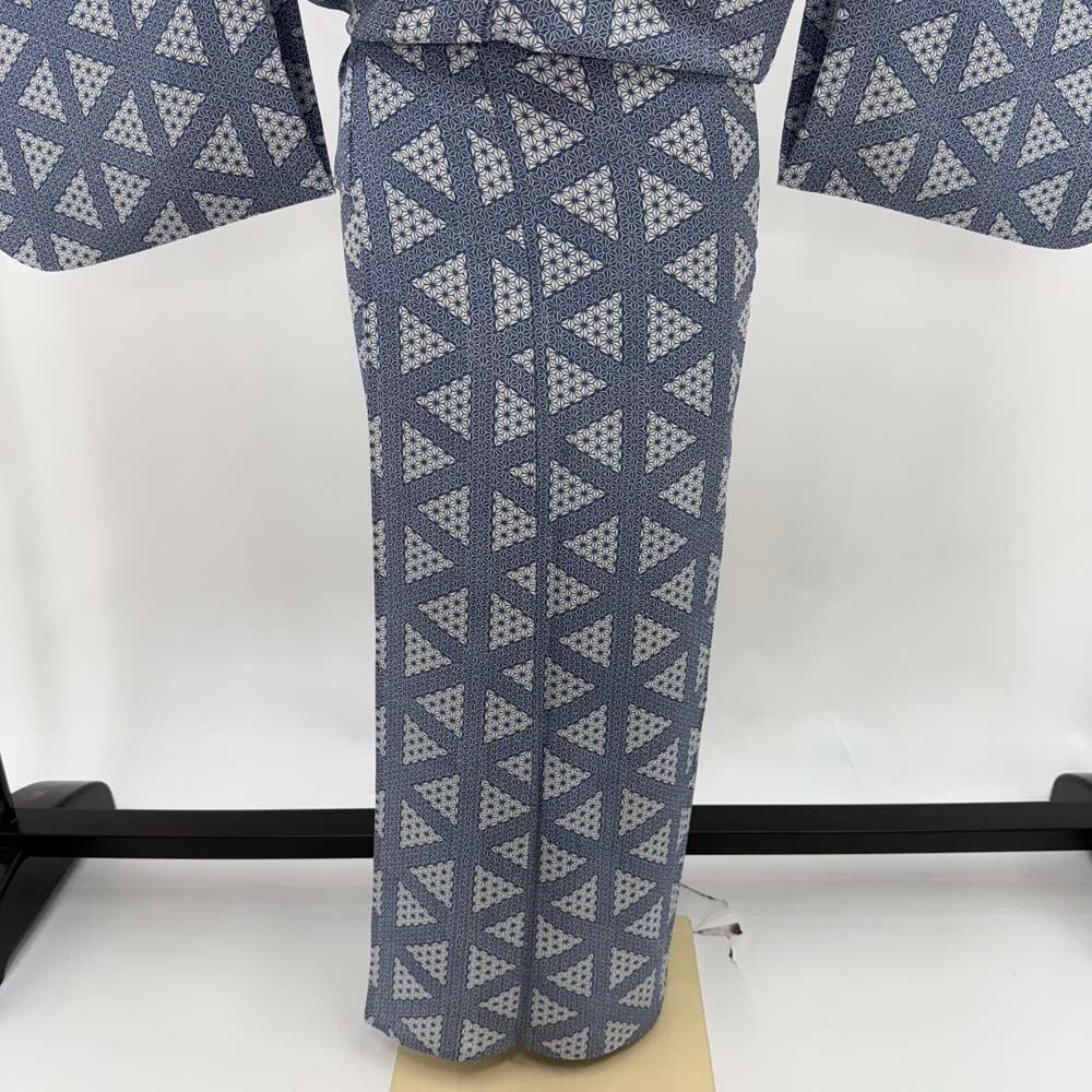 小紋 単衣 洗える着物 裄60.8cm 身丈151.2cm 花柄 お洒落着 普段着 ポリエステル グレー 美品 S サイズ 4621