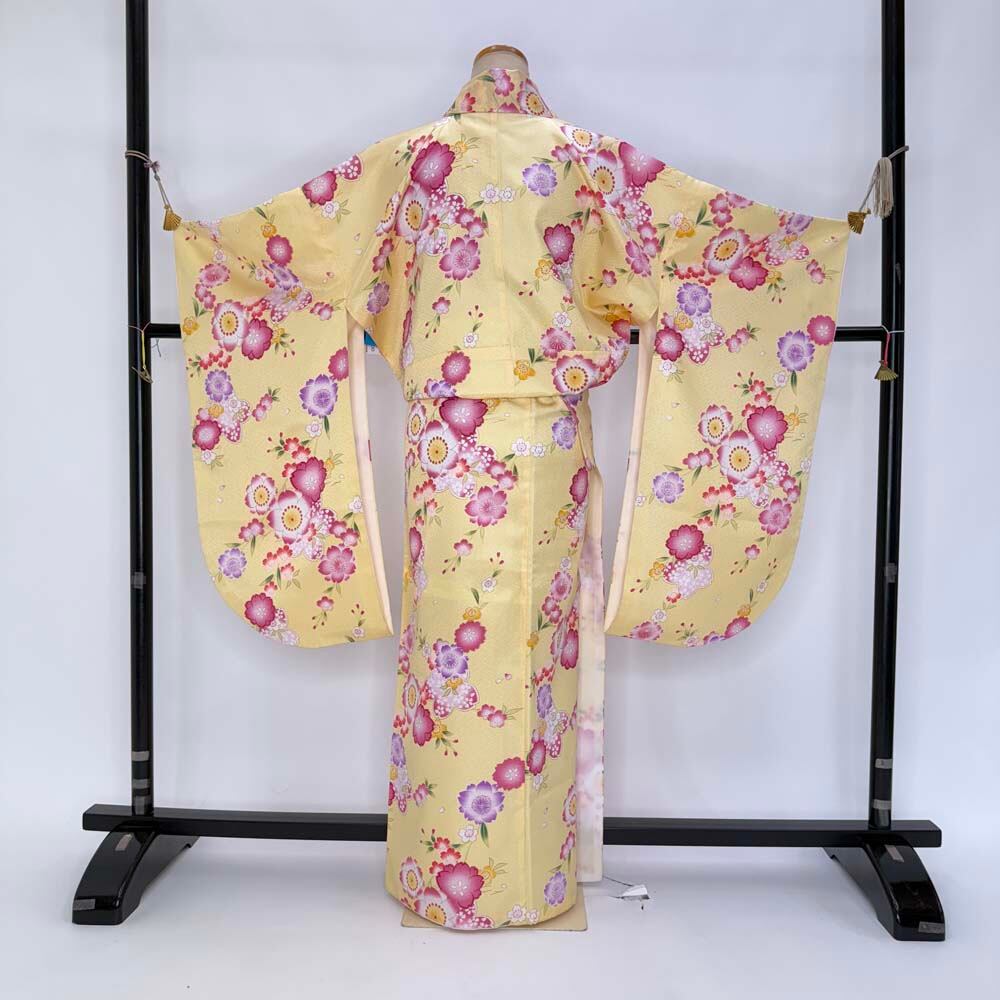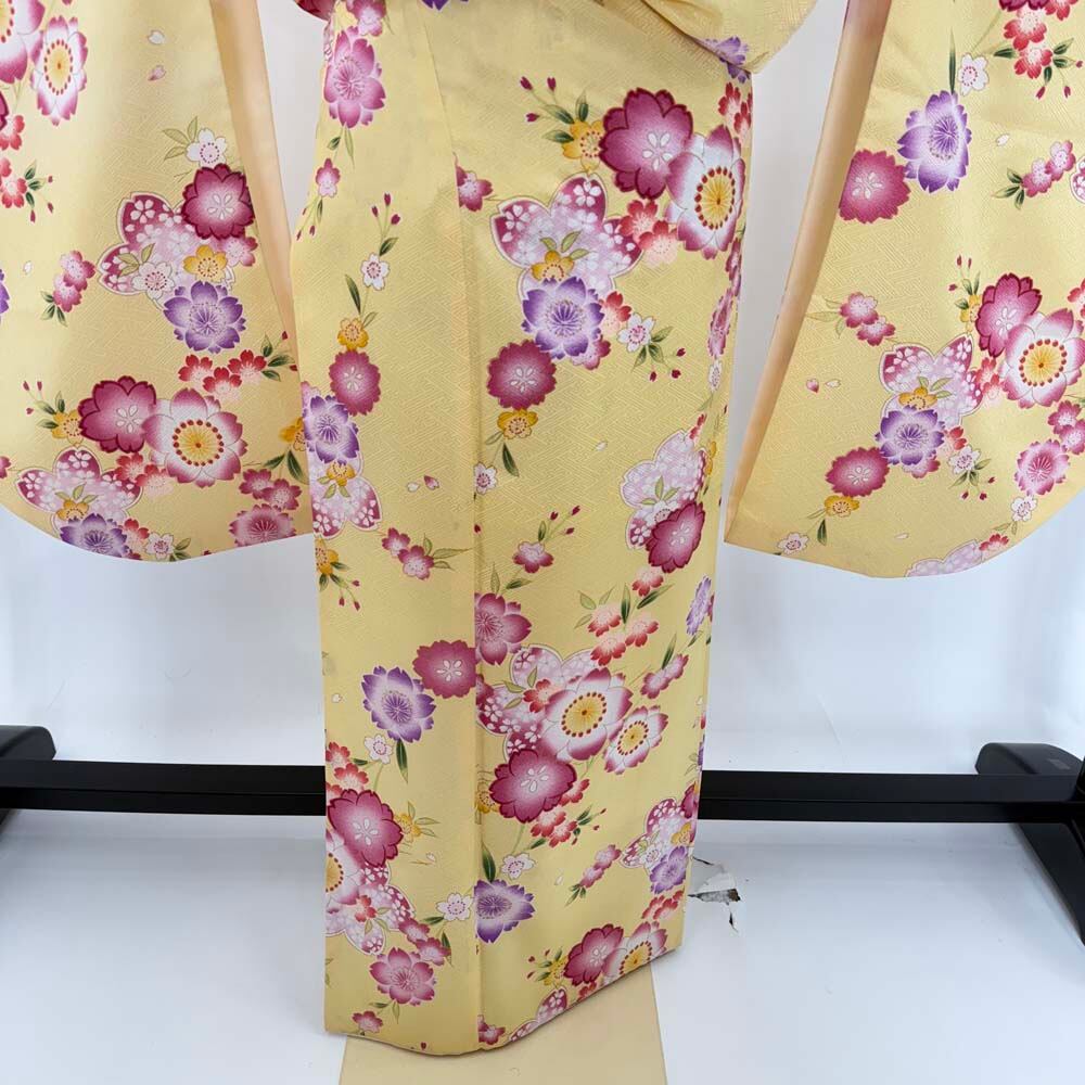 二尺袖 単品 卒業式着物 黄色 裄67cm Lサイズ 袴用着物 化繊 中古 4670
