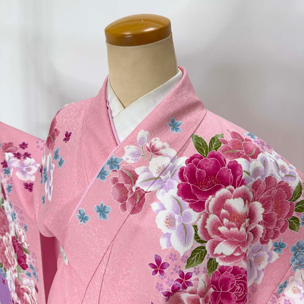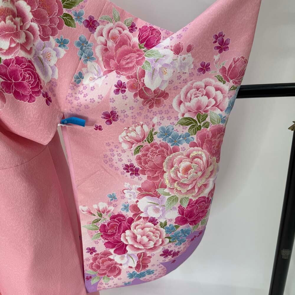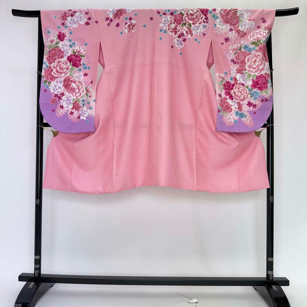 二尺袖 単品 卒業式着物 ピンク 裄67.5cm Lサイズ 袴用着物 化繊 中古 4672