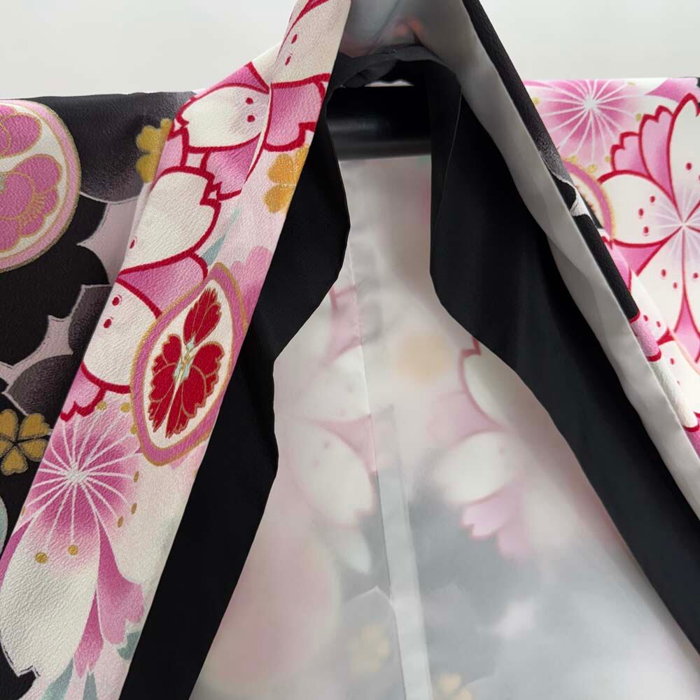 二尺袖 単品 卒業式着物 白 黒 裄69cm Lサイズ 袴用着物 化繊 中古 4681