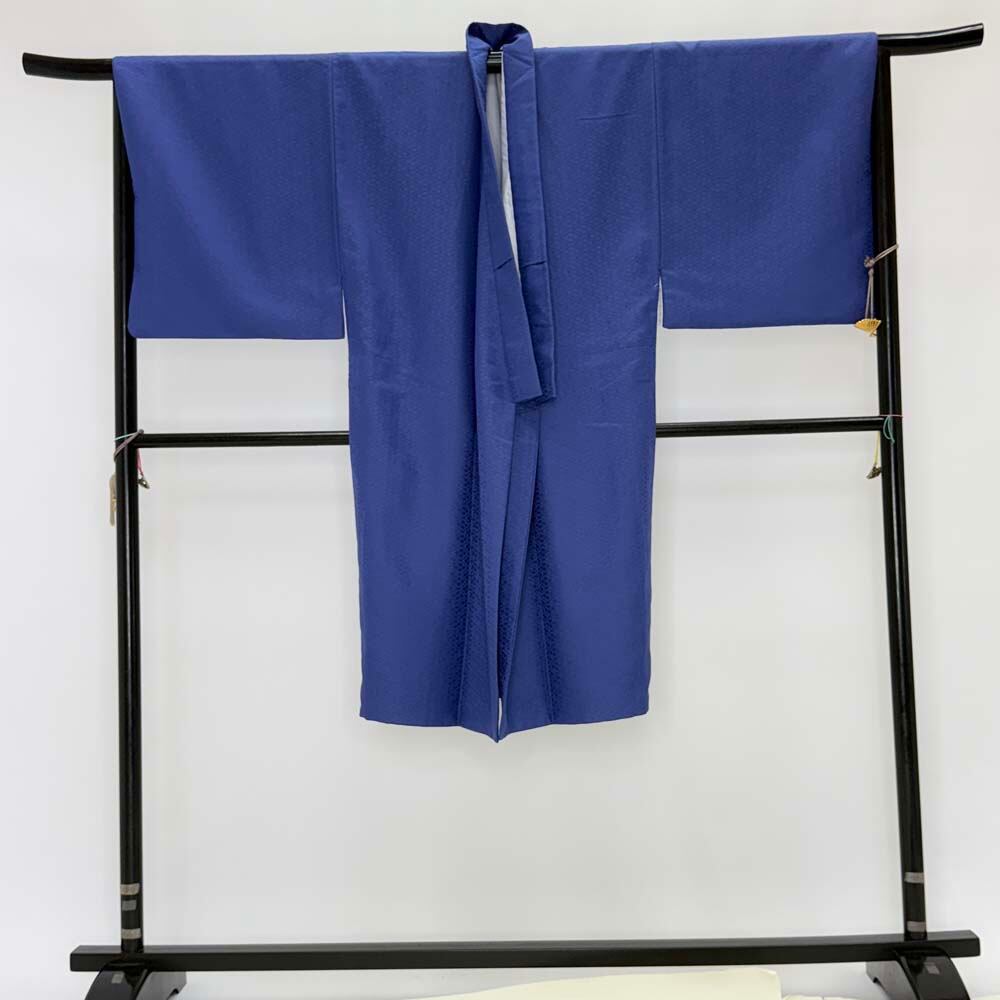 紋付袴 4点セット 着物 羽織 袴 角帯 長着 成人式袴 裄72.2cm 袴丈87.5cm L 白 青 五つ紋 中古 4797