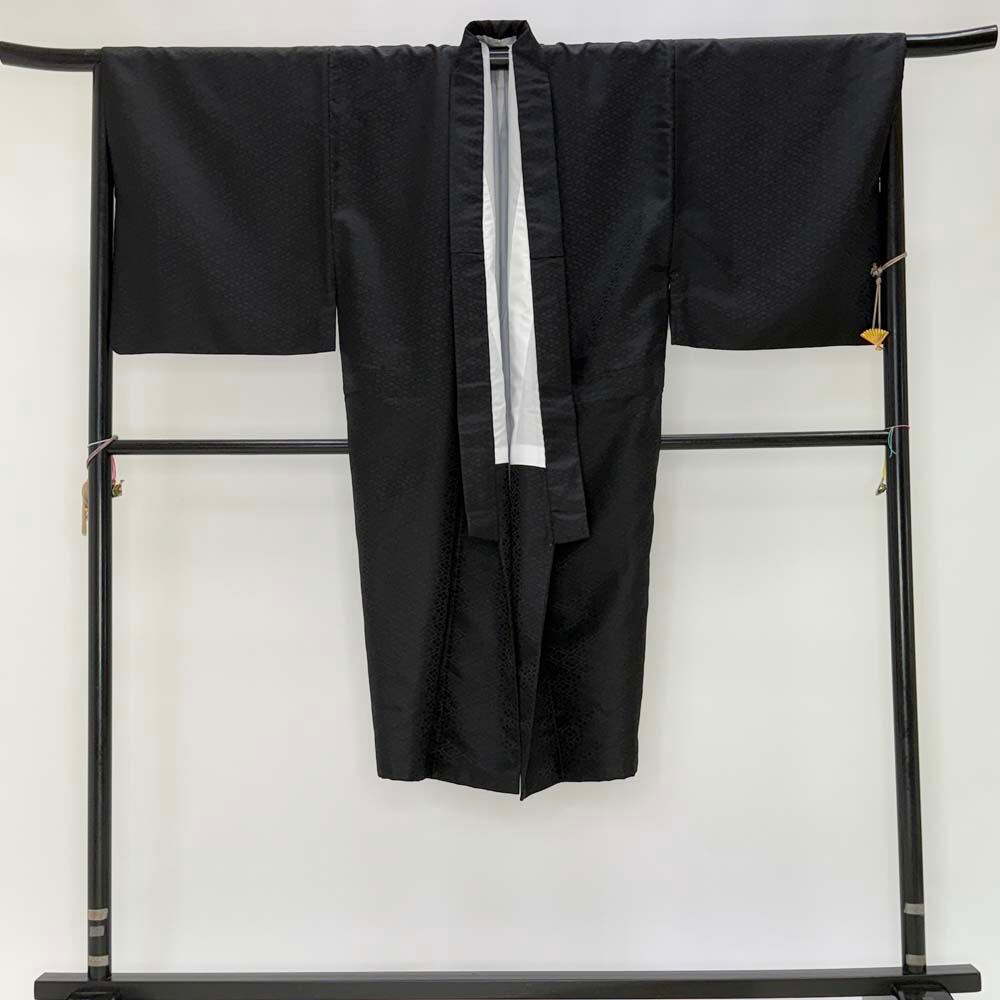 紋付袴 4点セット 着物 羽織 袴 角帯 長着 成人式袴 裄74.5cm 袴丈91cm 2L 金 黒 五つ紋 中古 4801